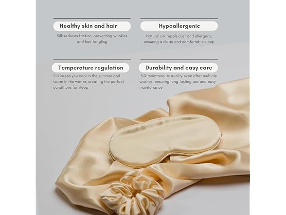 - Gift Set: Includes silk pillowcase queen envelope, eye mask & scrunchie in elegant packaging.