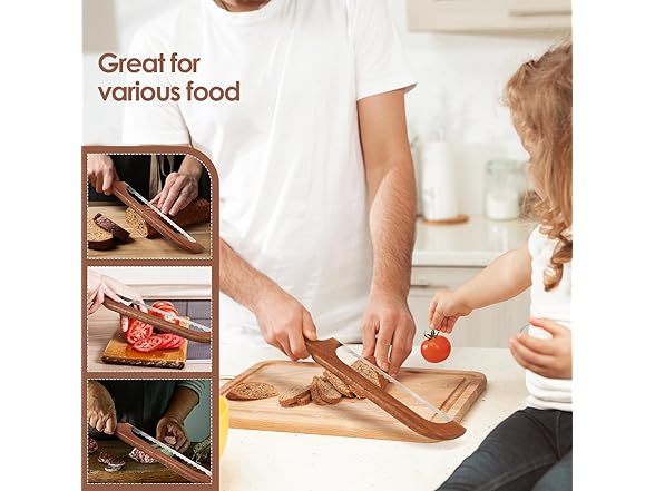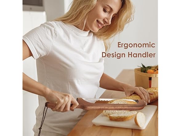- Thickened Bow Body - Secure Ergonomic Grip:Crafted for Sourdough Bread cutter for Homemade Bread mastery, our bread knife features a thickened silicone grip that molds to your palm. The Serrated Bread Knife blade slices crusty loaves effortlessly, while the wooden Bread Knife design balances precision and comfort—proven by bakers who demand both beauty and performance
