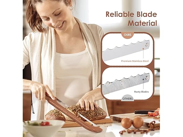 - Reliable and Sturdy Quality: Engineered for daily baking marathons, this sourdough knife withstands crusty sourdough battles with military-grade resilience. Its Serrated Bread Knife edge stays razor-sharp through 100 loaves, while the wooden Bread Knife balance handles airy ciabatta like handling clouds. Trusted by Sourdough Bread Knife for Homemade Bread warriors, it's the kitchen heirloom that outlasts trends and tin bread