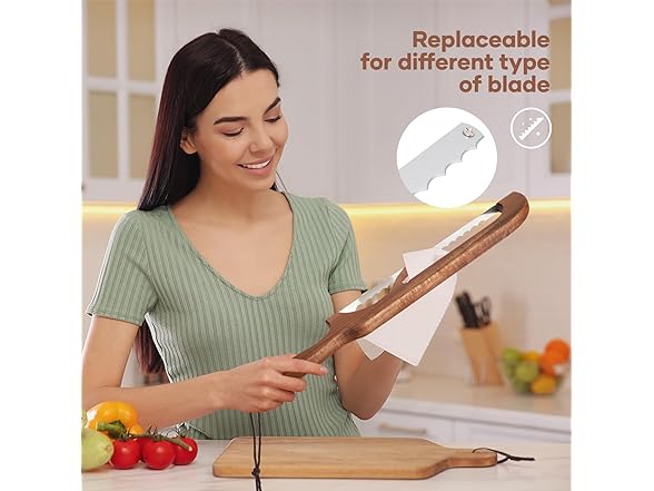 - Sharp and Precise Cut: Glide through crusty sourdough like a professional with our Bread Bow Knife. The Serrated Bread Knife's 22° wave-edge teeth bite deep without crushing crumbs, while its wooden Bread Knife design ensures surgical precision. Perfect Homemade Bread presentation – over 90% users achieved deli-quality slices on first try