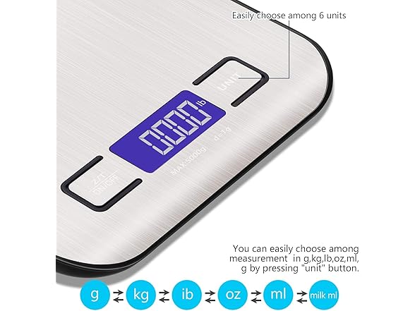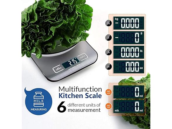 - Multifunctional kitchen scale measures units between oz g mL and lb oz Include water and milk volume measurement modes