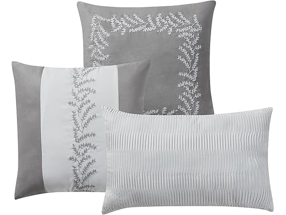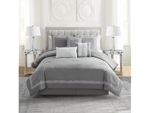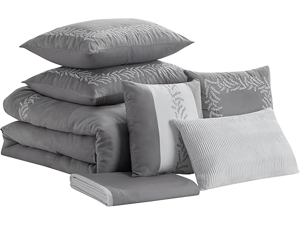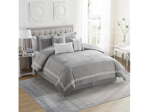 Sweet Home Collection Queen Comforter Set 7-Piece Embroidered Faux Suede Bedding – Soft, Elegant & Complete Bedding Set with 1 Comforter, 2 Pillow Shams, 1 Bed Skirt, and 3 Decorative Throw Pillows, Queen, Gray