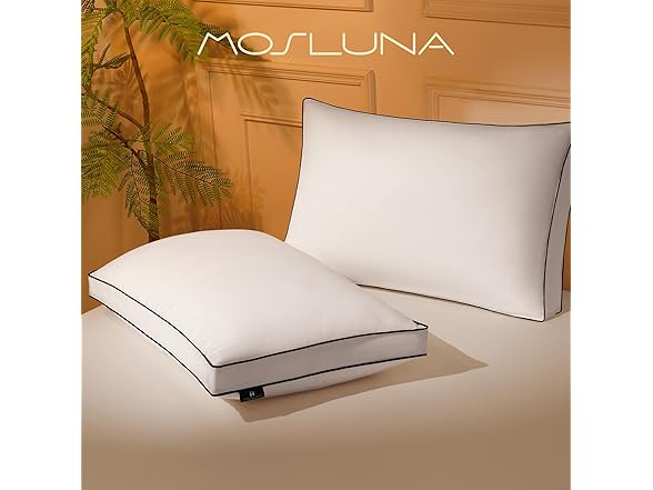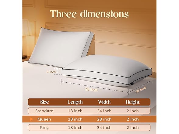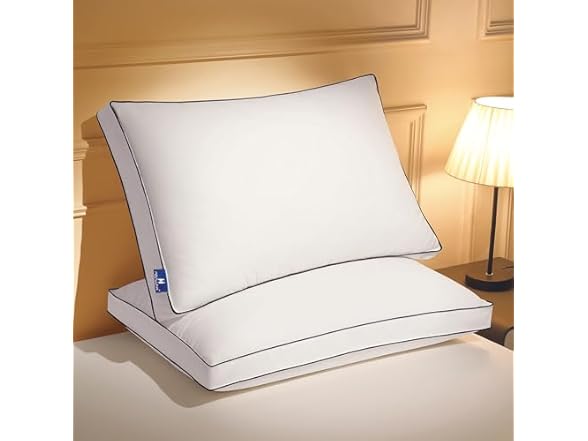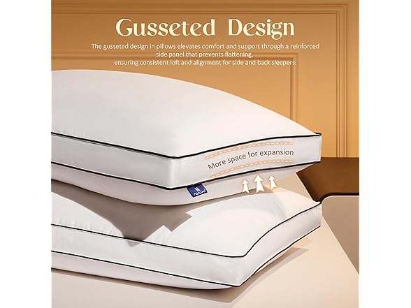 Feather Down Pillows Queen Size Set of 2 with Gusset, Luxury Hotel Collection Bed Pillow 2 Pack, Down Surrounded Gusseted Pillows for Sleeping, Soft Fluffy for Side, Back Sleepers 18x28x2 in.