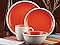 - The dinnerware set comes in a variety of bold, two-tone hues that add color to all types of table settings
