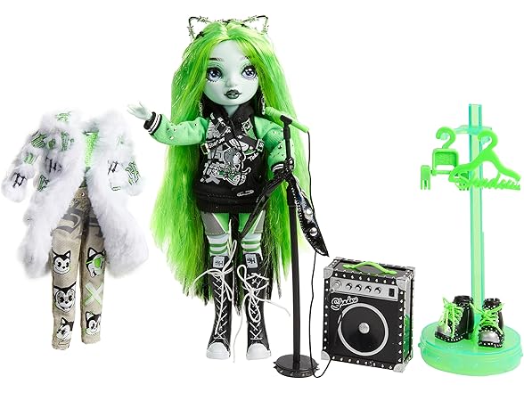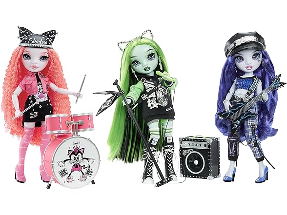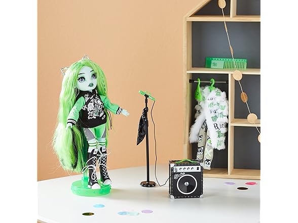 - NEON SHADOW ROCKBAND INTRUMENTS: Harley comes with all her essential rockstar play pieces including a mic + stand + studded mic scarf, and matching amp set with stud details + cord. She’s even personalized it with a shadow graphic to pair back to her performance outfit. This playset will give kids endless joy and imaginative storytelling entertainment.