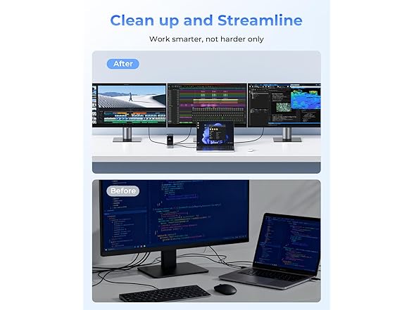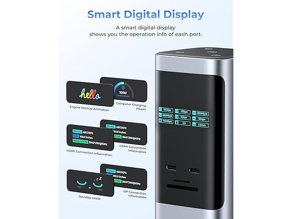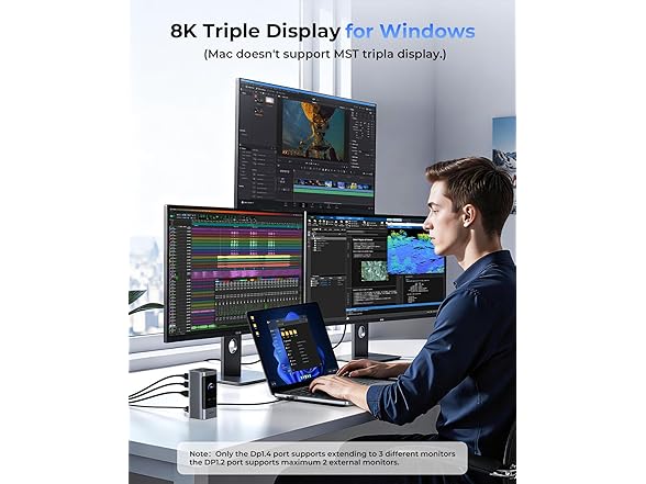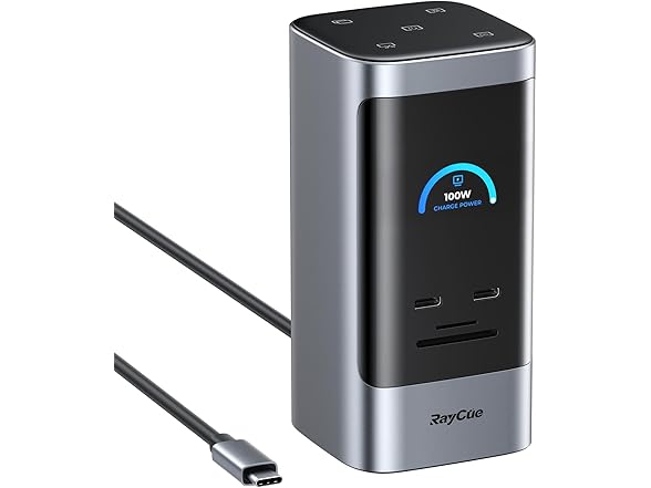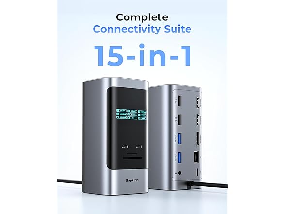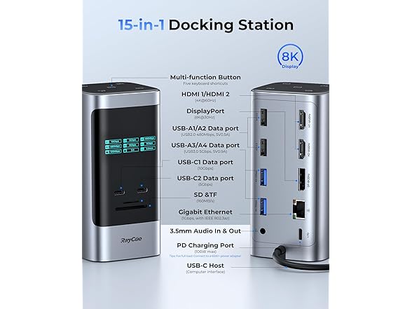 RayCue 15 in 1 Laptop Docking Station 3 Monitors, Triple 8K Display with 3 HDMI, 6 USB Ports, 5 Shortcut Button, Gigabit Ethernet, PD3.0, Smart Display for Windows/Dell/Lenovo/HP/Thinkpad Laptops