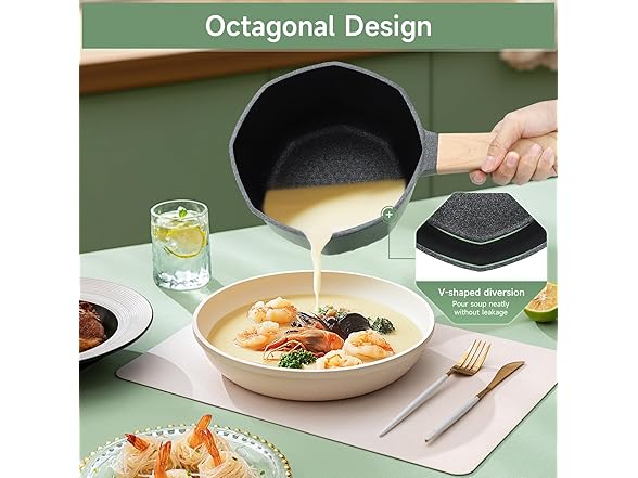 - Sturdy Construction: The hard-anodized exterior and forged design of this kitchen pots and pans set provide durability and reliability. The reinforced die-cast aluminum construction ensures long-term performance. The octagonal design ensures pour soup neatly without leakage. Pans set nonstick is free of PFOA, PTFE, PFAS, lead, and cadmium, ensuring safety and health.
