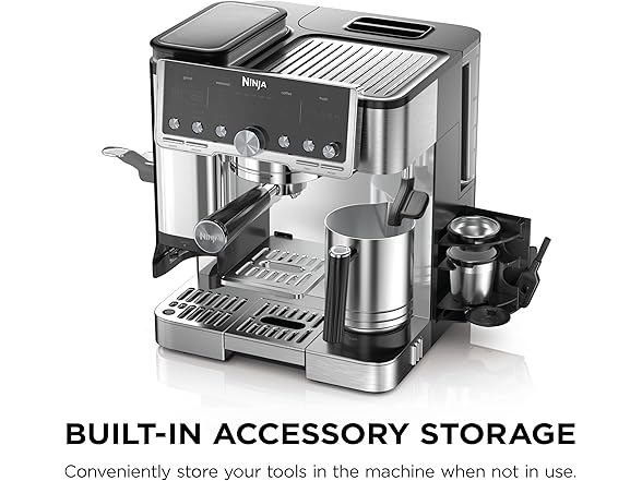 - BUILT-IN STORAGE: Keep brew baskets, brush, and cleaning disc in the built-in storage compartment.