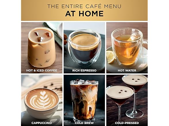 - 4 MACHINES IN 1: Brew without limits with no guesswork espresso, well-balanced drip coffee, rapid cold brew, and an independent hot water system. 5 Espresso Styles — single, double shot or quad shot, ristretto & lungo. 3 Drip Coffee Styles—classic, rich or over ice, 2 Cold Brew styles — cold pressed espresso or cold brew coffee, and Independent Hot Water System – americanos, tea, and hot chocolate (drip coffee and cold brew available in 6, 8, 10, 12, 14, 16, 18 oz. sizes).