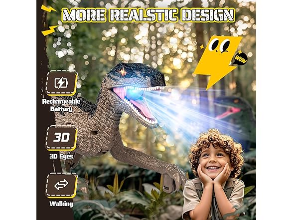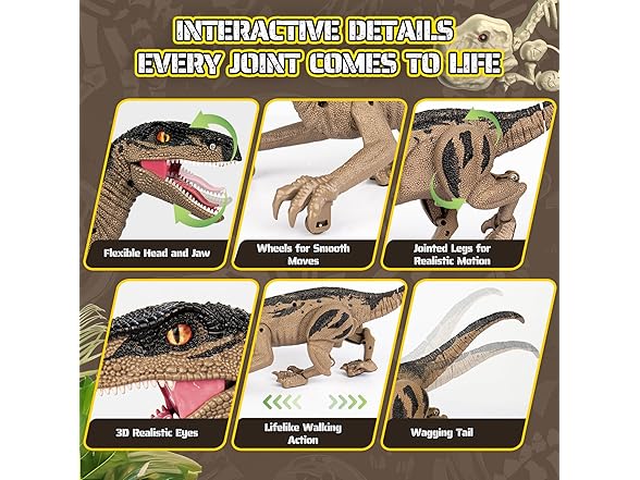 - Lifelike Appearance and Realistic Movement:This velociraptor dinosaur toy is designed with detailed textures, 3D eyes, and a natural walking posture, bringing dinosaurs from the Jurassic era back to life. The smooth movement and vivid details immerse children in a world of prehistoric adventure