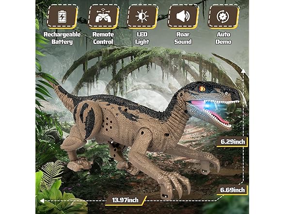 - One-Touch Dinosaur Adventure Experience:This remote control dinosaur features an automatic demo mode. Simply press one button to watch it walk and start roaring! With three realistic sound effects, it brings the prehistoric world to life, creating an immersive play experience that sparks children’s curiosity and imagination. It is perfect for children who love dinosaur toys and enjoy thrilling adventures