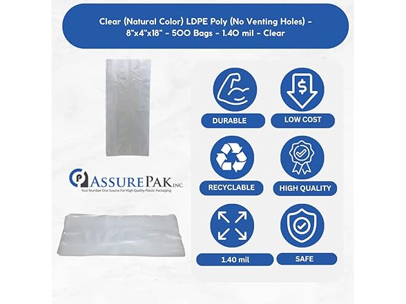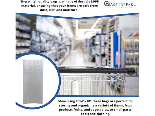 Plastic Produce Bag for Bread and Groceries - 8"x 4"x 18" - 500 Bags - 1.4 mil - Natural Color - No Venting Holes LDPE