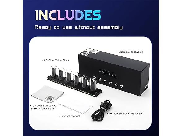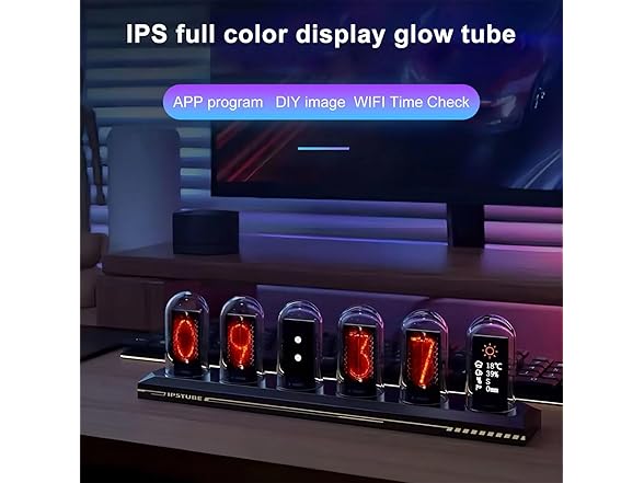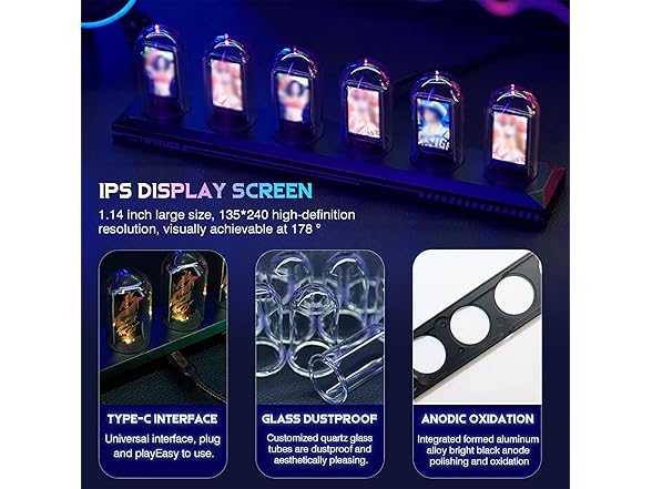 YXJPP RGB Glow Tube Clock, Nixie Tube Clock with 1.14-inch IPS Display, Supports 12/24H Formats/DIY Image Upload and Confession Mode, Cool Technology Style and No Required Assembly