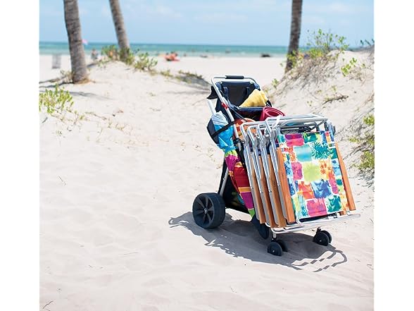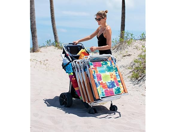 - FOLDING BEACH CART: Multi-use and versatile utility cart holds a 48 quart cooler and 4 beach chairs, perfect for a day trip to the beach or lakefront