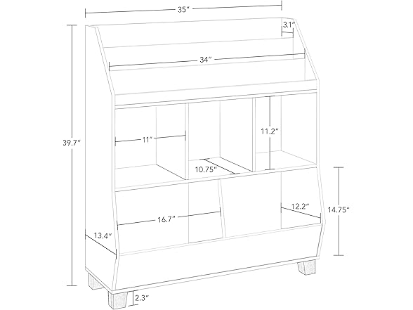 - ASSEMBLED SIZE AND WEIGHT: Our cubby storage organizer measures 35” W x 13.37” D x 39.67” H when assembled, making it the right size for a kids bookshelf and reading nook. Holding up to 115 lbs, it has a safe and sturdy build quality. This product will hold up to 10 pounds per book slot, 15 pounds per cubby and 20 pounds per lower bin for a total weight capacity of 115 pounds.