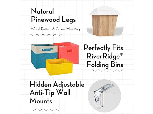 - FLEXIBILITY AND CAPACITY: Holding up to 115 lbs, this organizer can store an array of items in its cubbies and compartments. Pair it with our RiverRidge folding fabric bins (sold separately) to conceal clutter and add pops of color to your space.