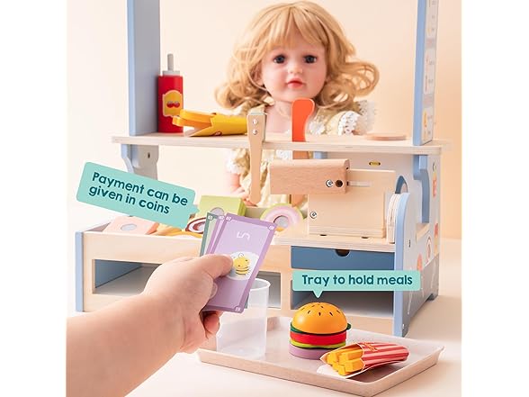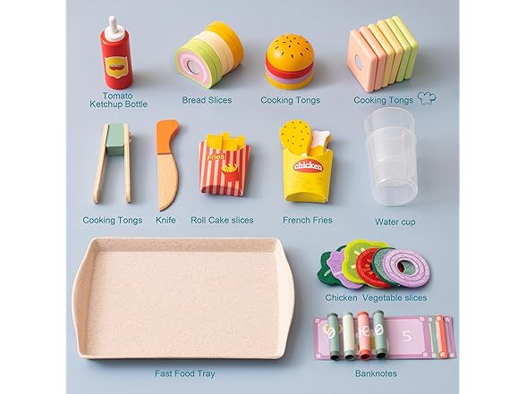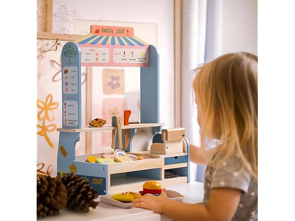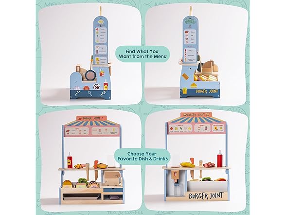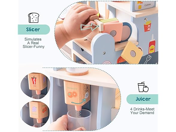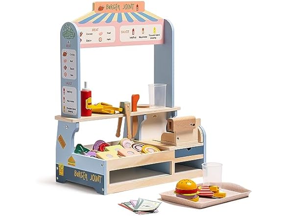 ROBUD Pretend Play Food Toys for Kids Toddlers, Wooden Kitchen Food Sets for Boys Girls - Sandwich Counter with Deli Slicer