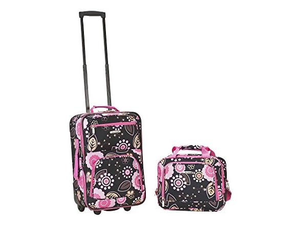 This beautiful deluxe 2-piece expandable luggage set is manufactured with a patented heavy duty eva-molded hi-count fabric. This set is perfect for the serious and experienced traveler. Manufactured with the very best heavy duty polyester and pvc backing, this luggage set is designed for the traveler on the go and comes with three expandable uprights and a flight tote bag. It comes packed with features including: an inside retractable handle, ez-roll in-line skate wheels, back zippered secured pockets, top and side comfort grip handle, stability bars at the bottom to avoid tilting, and locks and keys. Upright features include: clear in-line skate wheel system for smooth ride, push-button self-locking internally stored retractable handle system, ergonomic and comfortable padded top and side grip handles, two front full size zipper-secured pockets, and three internal organizational pockets for all your traveling needs. Each upright's interior is fully lined with a durable and elegantly imprinted lining and elegant silver pewter heavy duty industrial hardware. Carry-on flight tote bag features include: elegantly imprinted full interior lining, detachable and adjustable non-slip shoulder strap, spacious main compartment, and maximum strength industrial hardware. Carry-on upright: 20 inches high x 13 inches wide x 7.5 inches (with wheels) expandable to 10 inches deep and weighs 6 pounds. Carry-on flight tote bag: 14 inches wide x 11 inches high x 5 inches deep and weighs 1 pounds.