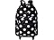 Rolling backpack with double skate wheels. Features include 2 zippered pockets on the front of the bag with one having a built in organizer. Zippered main compartment opens to large storage opening, and two mesh side pockets. Fabric handle at the top and telescoping pull handle. Bag made of durable polyester with metal telescoping handle and heavy duty plastic stand on bottom to keep the bag standing.
