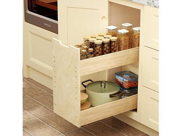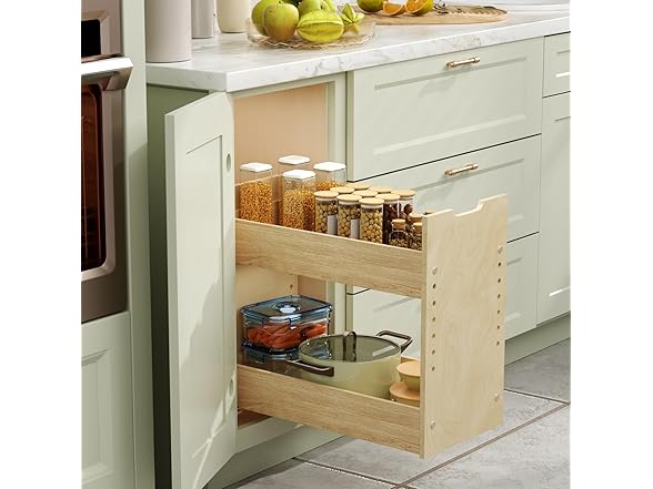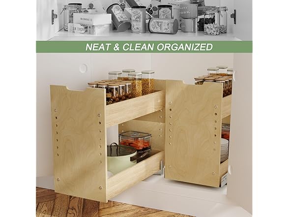 ROOMTEC Pull Out Cabinet Organizer with U Bracket,10½”W x 18½”H 2-Tier Adjustable Kitchen Spice Rack, Spice Rack Organizer for Narrow Cabinet Drawers Slide Out, Soft Close