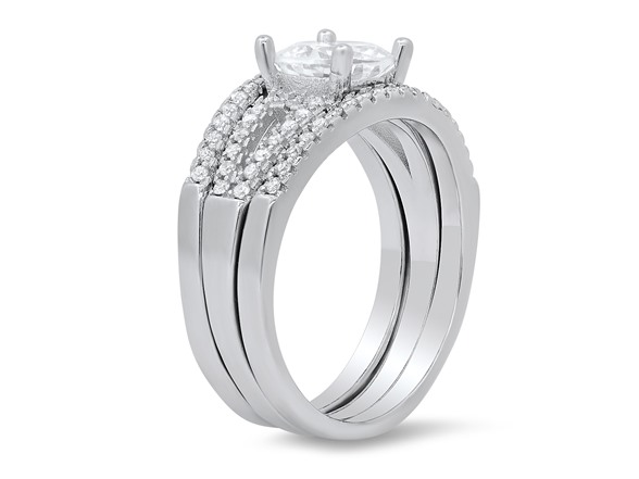 Queen Jewels Sterling Silver Round CZ 3-Piece Stackable Ring Set