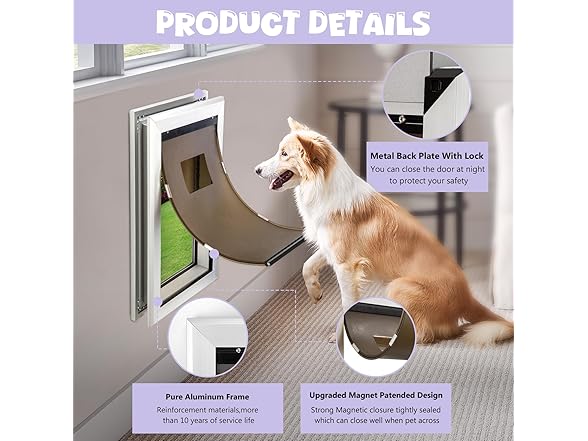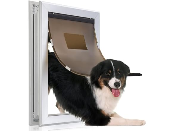 Rseord Durable Pet Door, Aluminum Door for Dog and Pets, X-Large Doggie Door with Automatic Closing Magnetic Flaps, Ideal for Interior and Exterior Doors, Screen and Wall, Weather Resistant
