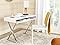 So simple, yet elegant and full of charm, the contemporary Gordon desk features x-shaped silver painted finish legs, white lacquered top, and a discreet pull-down compartment with ample room for storing a laptop, Ntebooks and other writing essentials.