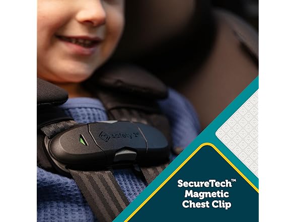 - SECURETECH MAGNETIC CHEST CLIP The red-to-green visual indicator on the chest clip makes it easy to see when your child is buckled, even with a quick glance from the front seat, giving parents peace of mind.