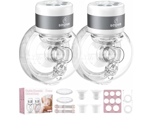 Saglve Wearable Breast Pump ABP-1506, Strong Suction Hand Free Double Electric Breast Pumps with 3 Modes & 9 Levels LED Display Portable Wearable Breastfeeding Pump for Office & Home, 21/24mm Flange