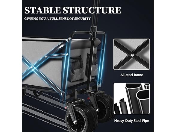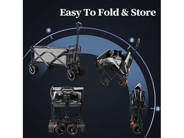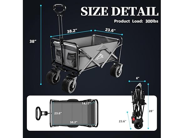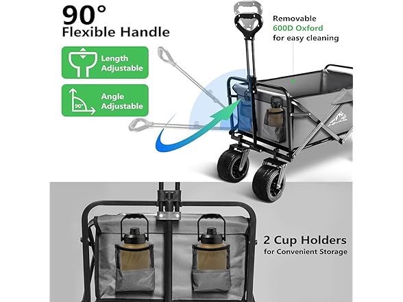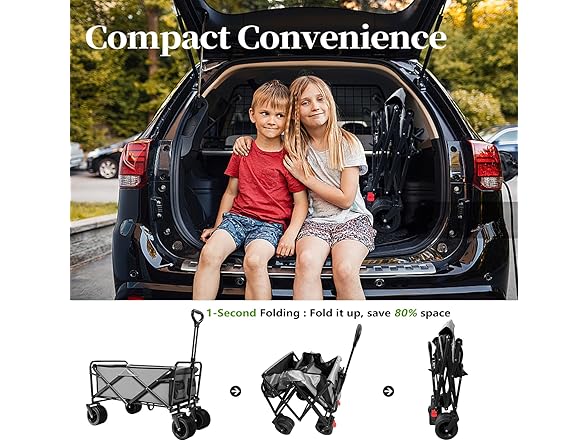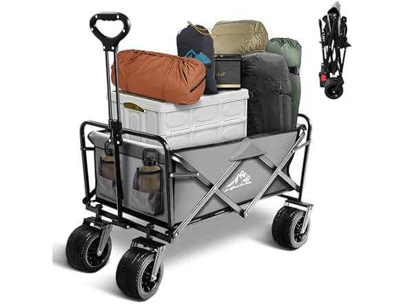 Collapsible Folding Wagon, Capacity 300lbs Heavy Duty Foldable Cart with Two Drink Holders, Portable Utility Grocery Wagon for Camping Shopping Sports, Gray