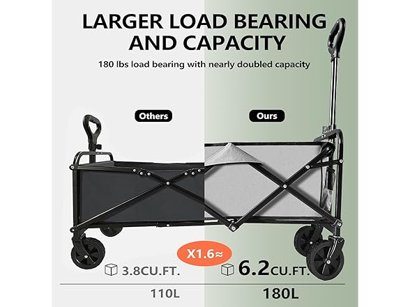 - Rational Design: Built-in double bearings to ensure a max loading capacity, which can roll smoothly and with less effort and have strong maneuverability enough to keep its goods intact over mud, grass, bumps, and curbs.