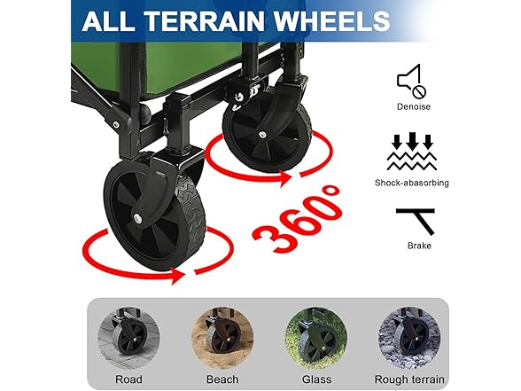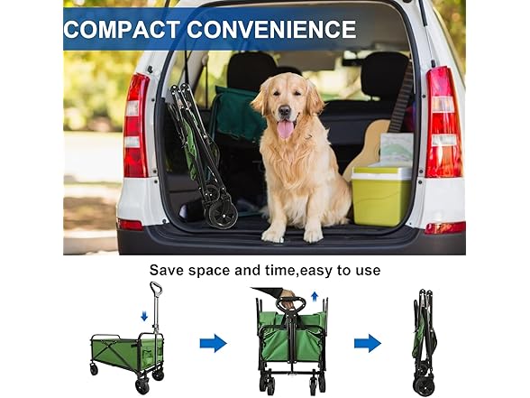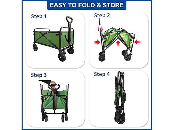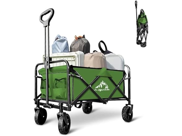 SAILARY Collapsible Wagon Cart Foldable Portable Heavy Duty Folding Beach Wagons, Outdoor Utility Carts with Large Capacity for Grocery, Camping, Shopping, Fishing, Sports, Garden Green