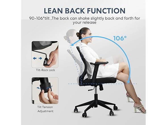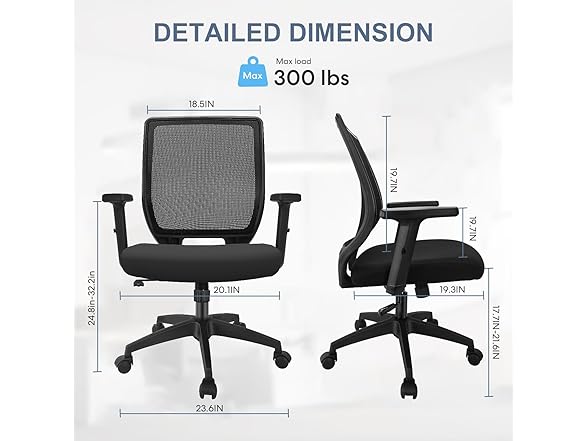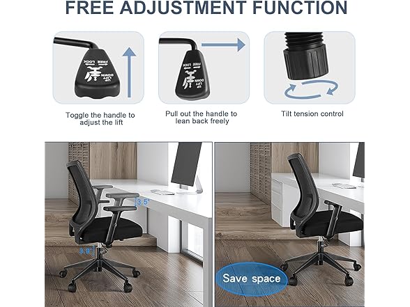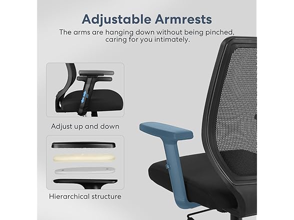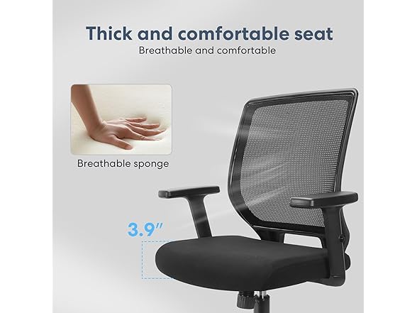 Ergonomic Office Chair Home Mesh Desk Chair with Adjustable Arms - Mid Back Computer Chairs for Adults - Swivel Task Chair Comfortable for Home Office