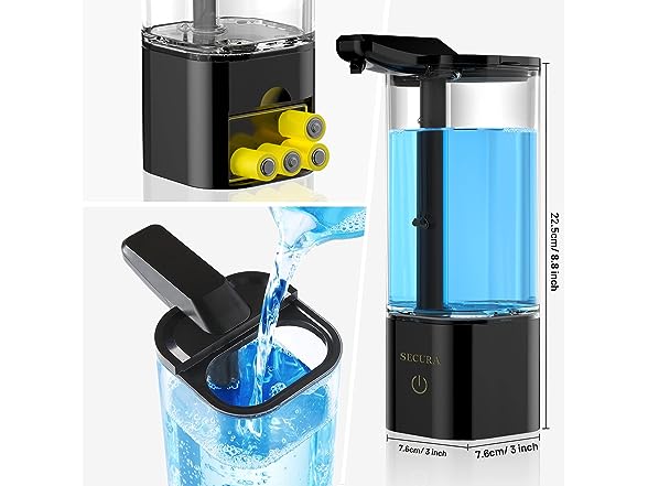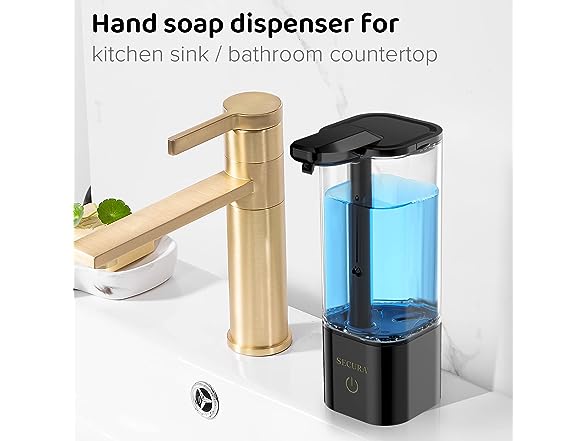 Secura 18.6 oz. Automatic Soap Dispenser, Touchless Liquid Soap Dispenser with 25-Second Timer, 3 Gear Distance-Controlled Volume Setting Prefect for Kitchen or Bathroom Black