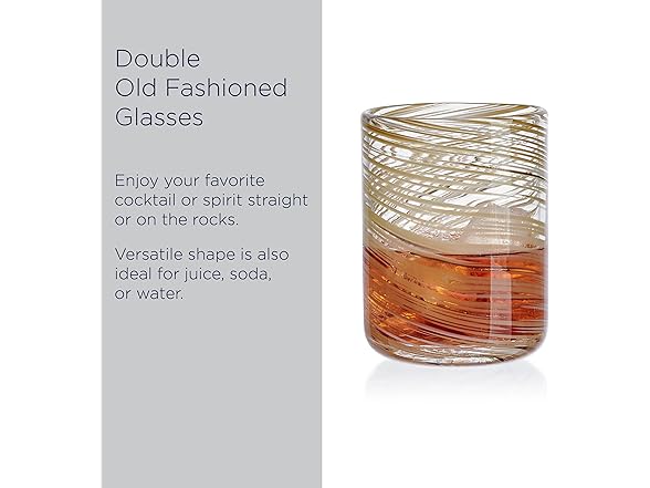 Mikasa Color Swirl Honey Set of 4 Double Old Fashion Drinking Glasses, 15 Ounce