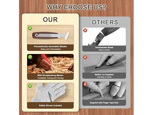 - 【GIFT PREFERRED】Our Wood Carving Set Is The Perfect Gift For A Carver Or Someone Who Is Embarking On A Creative And Crafty Journey! Whether It's Christmas, Birthday Or Thanksgiving, It's A Great Choice For Gifting Family, Friends And Loved Ones To Enjoy The Joy And Creative Experience Of Wood Carving Together.