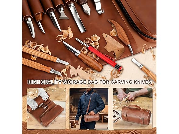 - 【WOOD CARVING TOOLS LEATHER ORGANIZER】: The Wood Carving Kit Ensures That You Can Easily And Safely Store Your Cutting And Carving Knives In A Leather Pouch. Each Knife Is Carefully Paired With Its Own Protective Sheath, Enhancing The Elegance And Organization Of The Kit. Experience The Epitome Of Fine Woodworking And Make It A Must-Have For Your Artistic Journey.