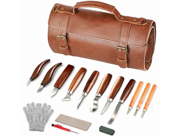 - 【WOOD CARVING KIT ENORMOUS DELUXE EDITIONG: This Woodcarving Knife Set Includes 15 Sharpening Tools, A Pair Of Cut-Resistant Gloves, A polish, And A Holster For Storing Your Tools. The Perfect Sharpening Set For Professionals And Wood Carvers To Easily Carve A Variety Of Wood Crafts!
