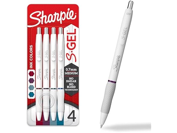 Sharpie S-Gеl Pens Fashion Barrel Gel Ink Pens Pearl White Body Medium Point (0.7Mm) Writing Coloring Gel For Journaling Bold Jewel Color Assortment 4 Count