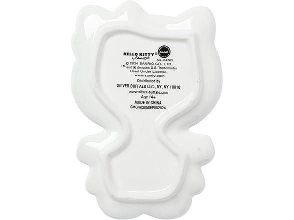 Celebrate the holidays with this trinket tray in the shape of Hello Kitty! Trinket tray features Hello Kitty in a gingerbread outfit with an adorable candy bow. Take care of this item by using HAND WASH ONLY to clean it. Keep your jewelry, keys, or small treasures safe with this Hello Kitty trinket tray. A festive and functional way to organize your everyday essentials while celebrating the holiday season with your favorite character. This kawaii tray is perfect for birthdays, holidays, and other gift exchanges. Take a dive into the fictional world with Silver Buffalo! Silver Buffalo provides fans with official merchandise from their favorite characters. Working alongside licensors and brands, we create unique and imaginative products which are designed with great care and detail. Silver Buffalo aims to connect fans to their favorite cartoon characters, superheroes, movies, tv-series, and more. Celebrate your fandom!