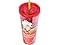 - STRAWBERRY SHORTCAKE: Themed cold cup features Strawberry Shortcake sitting on top of a strawberry. Background of the cup is filled with red glitter and the tumbler is complete with a green straw.