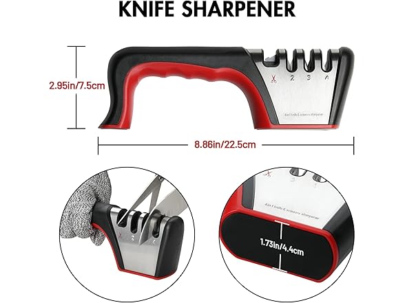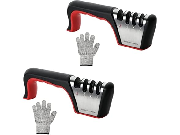 Simple Deluxe 2 Pack 4-in-1 Kitchen Knife Sharpener, 4 Stage Knife Sharpener Accessories & Scissors Sharpener Tool with One Cut-Resistant Glove to Repair, Restore, Sharp, Polish Blades