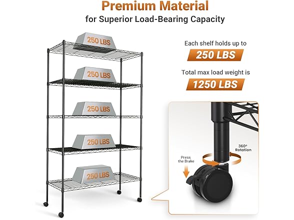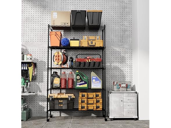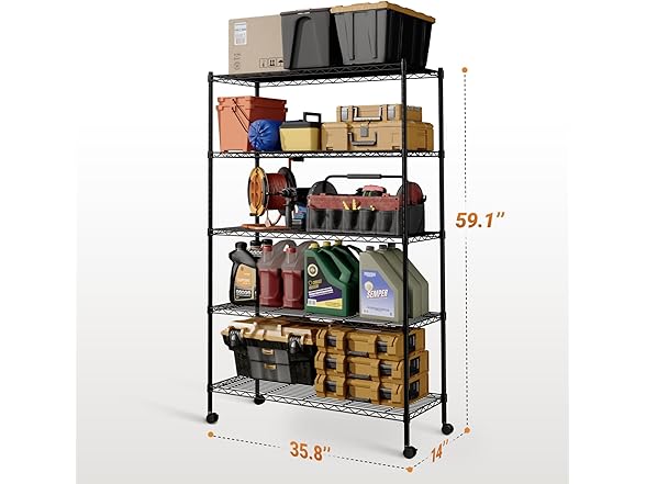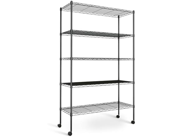 Simple Deluxe Heavy Duty 5-Tier Storage Shelving Unit, 35.83" W x 13.98" D x 61.02" H, 1250 Lbs Loading Capacity, Black