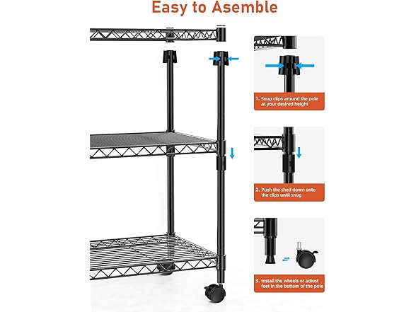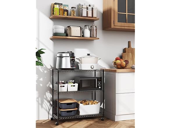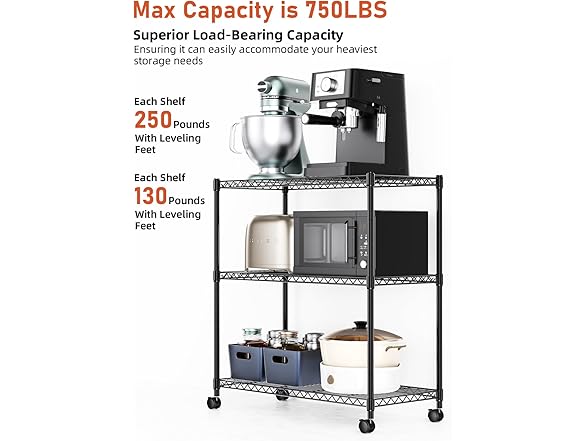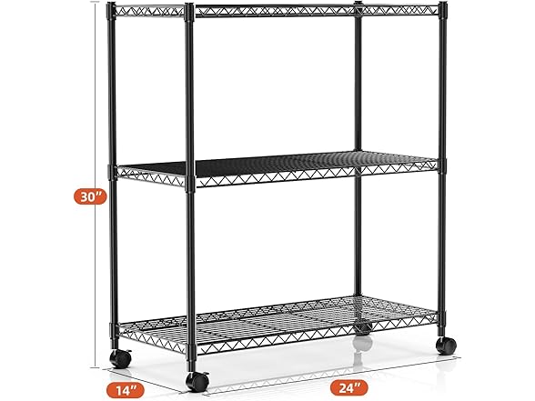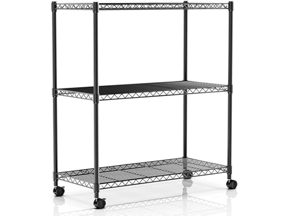 Simple Deluxe Heavy Duty 3-Tier Storage Shelves 750Lb Capacity, 24.02" D x 13.78" W x 29.92" H Shelving Unit for Pantry, Garage, Laundry and Kitchen, Black