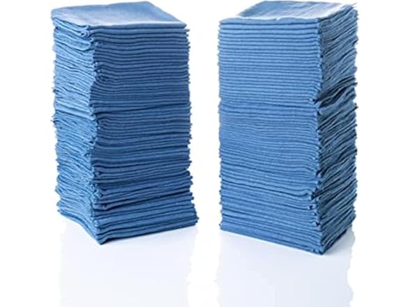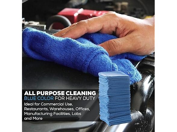 SIMPLI-MAGIC Premium Cotton Shop Towels 14"x12" (125 Pack) – Reusable Cleaning Shop Rags for Automobiles, Industries, Garage and Homes (Blue)