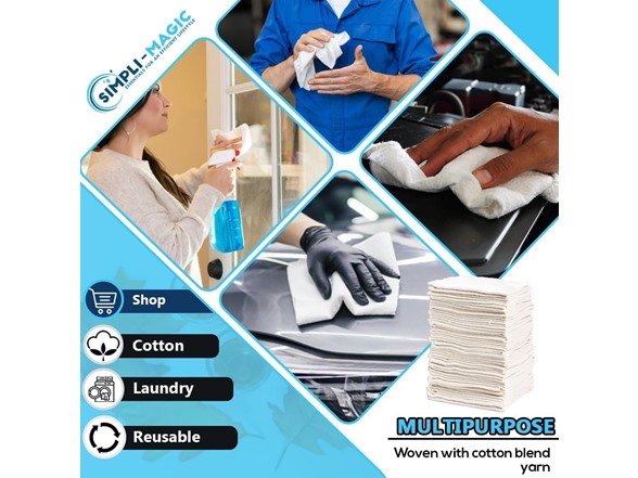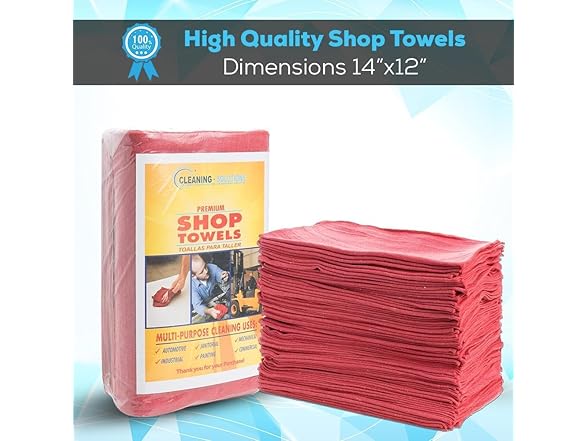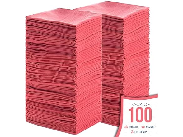 Simpli-Magic Premium Shop Towels 14”x12”, 100 Pack, Commercial Grade, Red or White