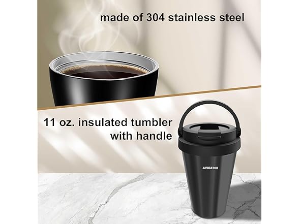 - Coffee Tumbler is included: Compatible with car holder, easy for one-handed operation; Made of stainless steel, good for keep drinks warm and safe for daily use; proper capacity of 11 oz, popular sizes for daily commuting