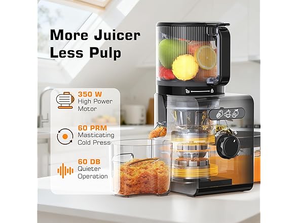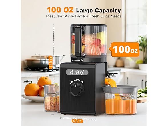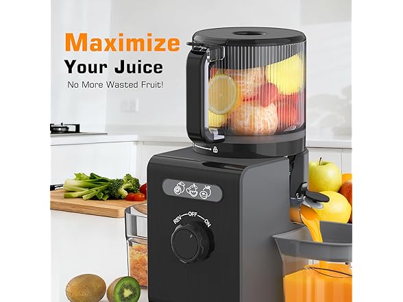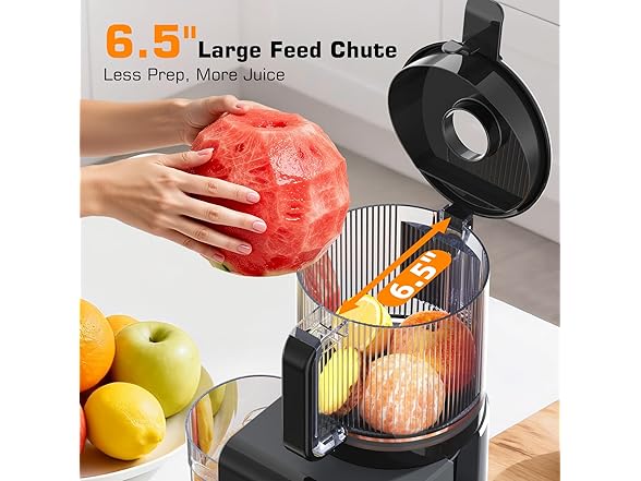 Cold Press Juicer Machines with 6.5" Large Feed Chute, Juicer for Whole Vegetables & Fruits, High Juice Yield (Black)