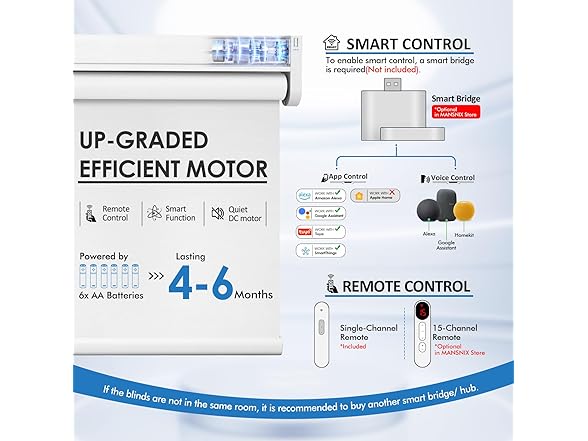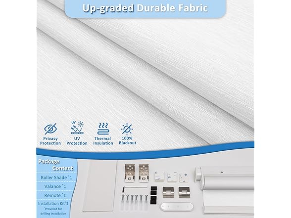 Smart Motorized Blinds with Remote, Cordless No-Drill Automatic Roller Shades, Blackout Electric Blind for Windows, White, 48 x 72