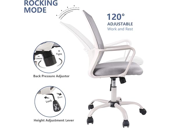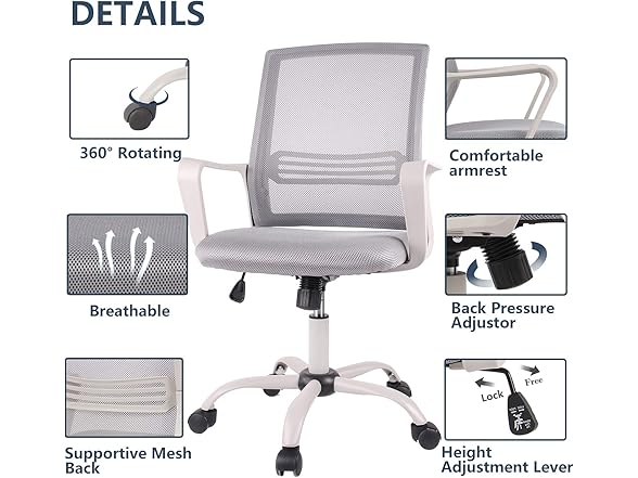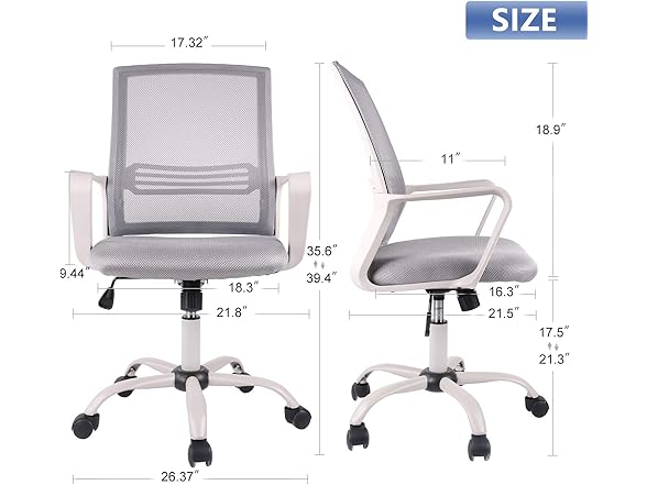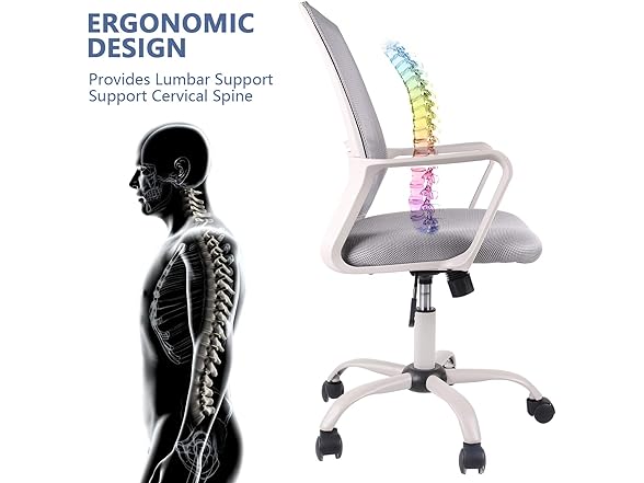SMUGDESK Ergonomic Swivel Task Computer Desk Home Office Chair with Wheels and Arms, Gray